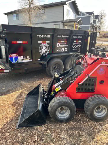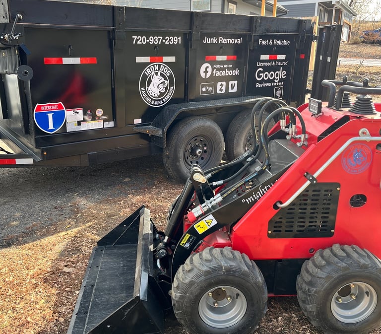 Iron Dog provides professional junk removal, hauling, cleanouts, and skid-steer services across Commerce City, Thornton, Northglenn, Brighton, Henderson, Fort Lupton, Denver, and surrounding Colorado areas. Whether you need a full garage cleanout, appliance removal, construction debris cleanup, or rock, dirt, and concrete hauling, we show up fast, on time, and with the equipment needed to handle any job safely.